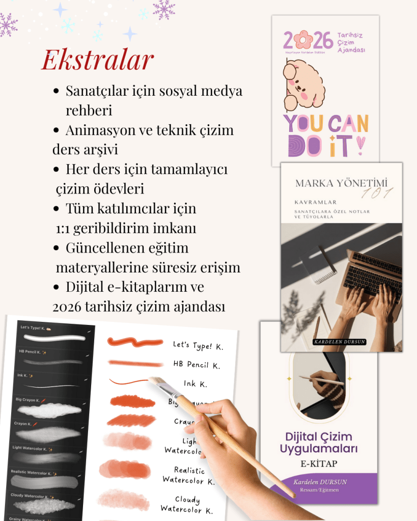 Hem dijital çizim öğrenmek hem de sanatını sosyal medyada doğru bir şekilde konumlandırmak istiyorsan, bu grup eğitim tam sana göre!